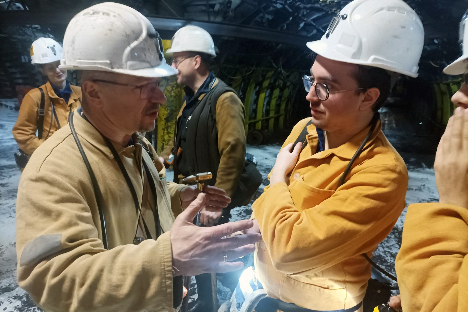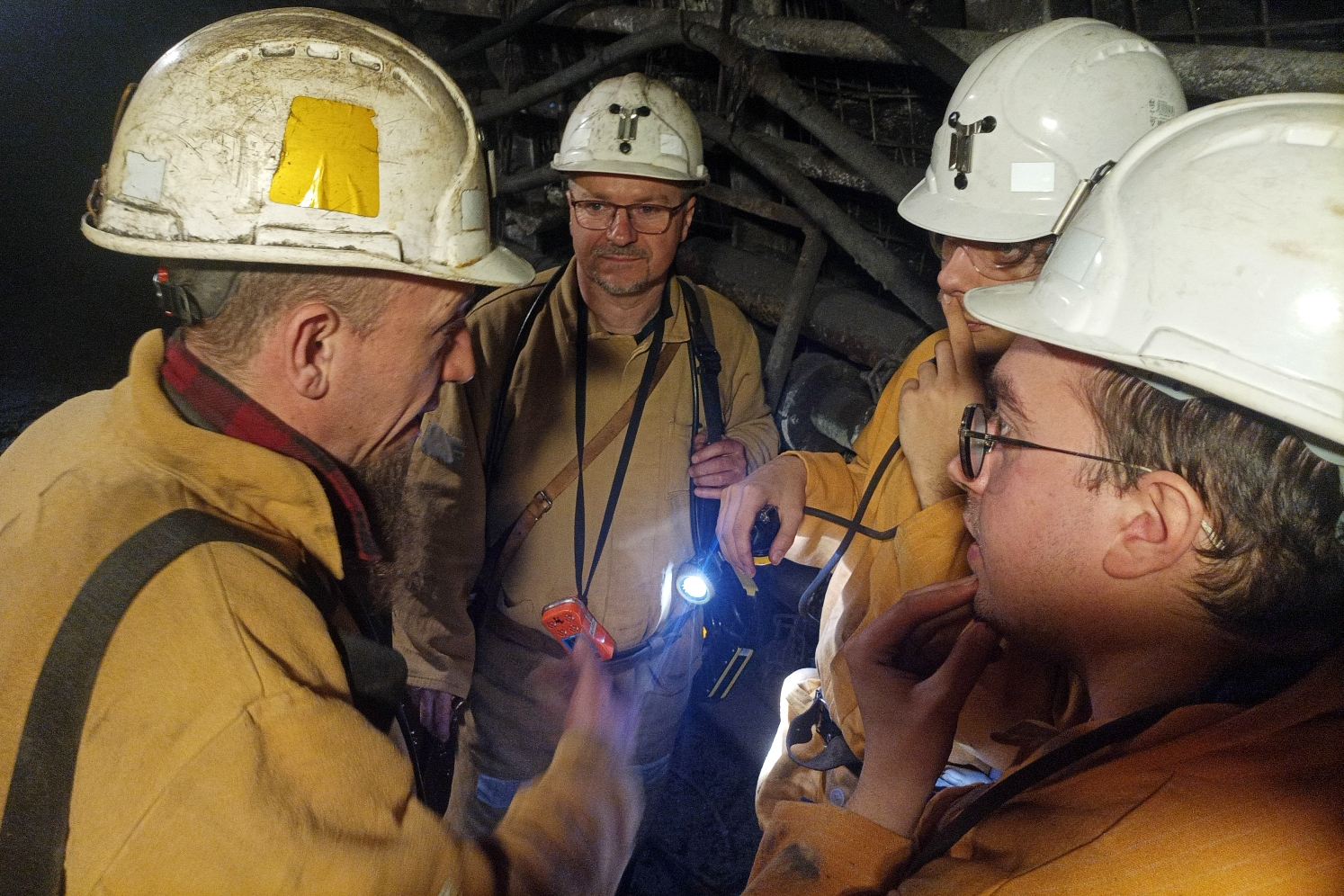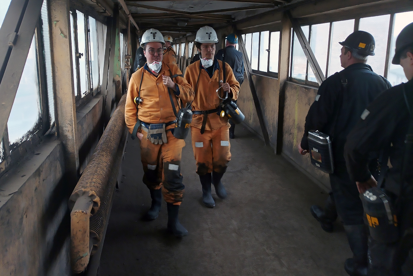 Szef Działu BHP Grzegorz Jendrusz wyznaczył do opieki nad gośćmi z Francji nadsztygara BHP Dariusza Sitko (wspólnie z Dariuszem Deptą - nadsztygarem wentylacji ds. przewietrzania i klimatyzacji, zwalczania zagrożenia metanowego, pyłowego oraz pożarowego). Okazuje się, że Dariusz Sitko w swej górniczej karierze pracował w aż trzech kopalniach, z których dwie już nie istnieją: Kazimierz Juliusz w Sosnowcu oraz Śląsk w Rudzie Śląskiej Kochłowicach, a trzecia - kopalnia Wujek w Katowicach - zostanie zamknięta w tym roku. W grupie z Francuzami idzie też młoda specjalistka BHP, która od kilku dni zapoznaje się z kopalnią Bolesław Śmiały. Została przeniesiona do Łazisk z wygaszanego ruchu Bielszowice w kopalni Ruda. To dobry przykład, jak ważna jest możliwość alokowania pracowników między kopalniami w procesie likwidacji, by z jednej strony wykorzystać ich kwalifikacje, a z drugiej - umożliwić normalne kontynuowanie ścieżki zawodowej w górnictwie.